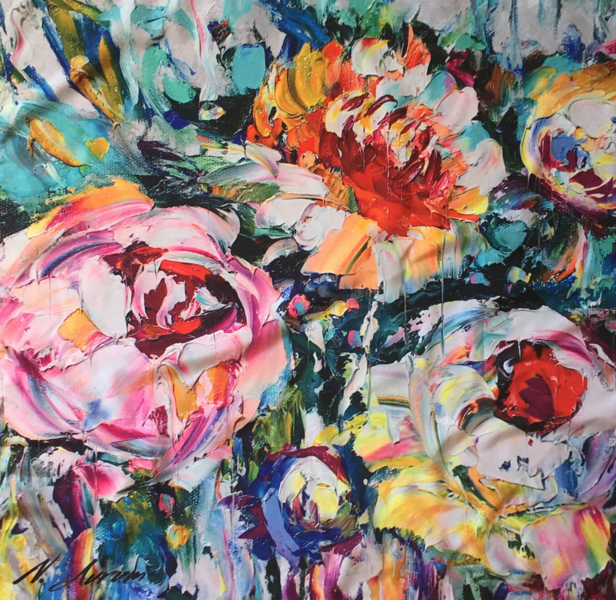 "Оренбургский НЕпуховый платок", платок - картина "Сказочные пионы",  коллекция " Цвет и золото", художник Наталья Акакина.